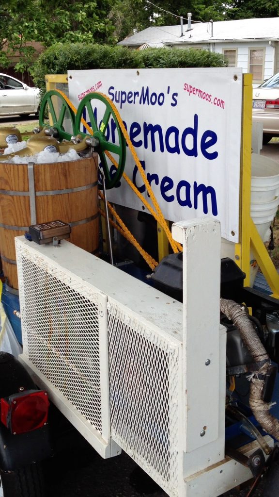 Super Moo’s Homemade Ice Cream is located in Oklahoma City, Oklahoma and has been making delicious homemade ice cream since 2009. Our own custom-built ice cream maker makes up to 10 gallons of ice cream per hour, and is entertaining to watch!